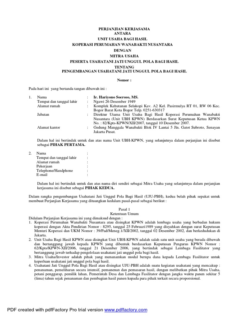 Contoh surat perjanjian kerjasama bagi hasil contoh surat.
